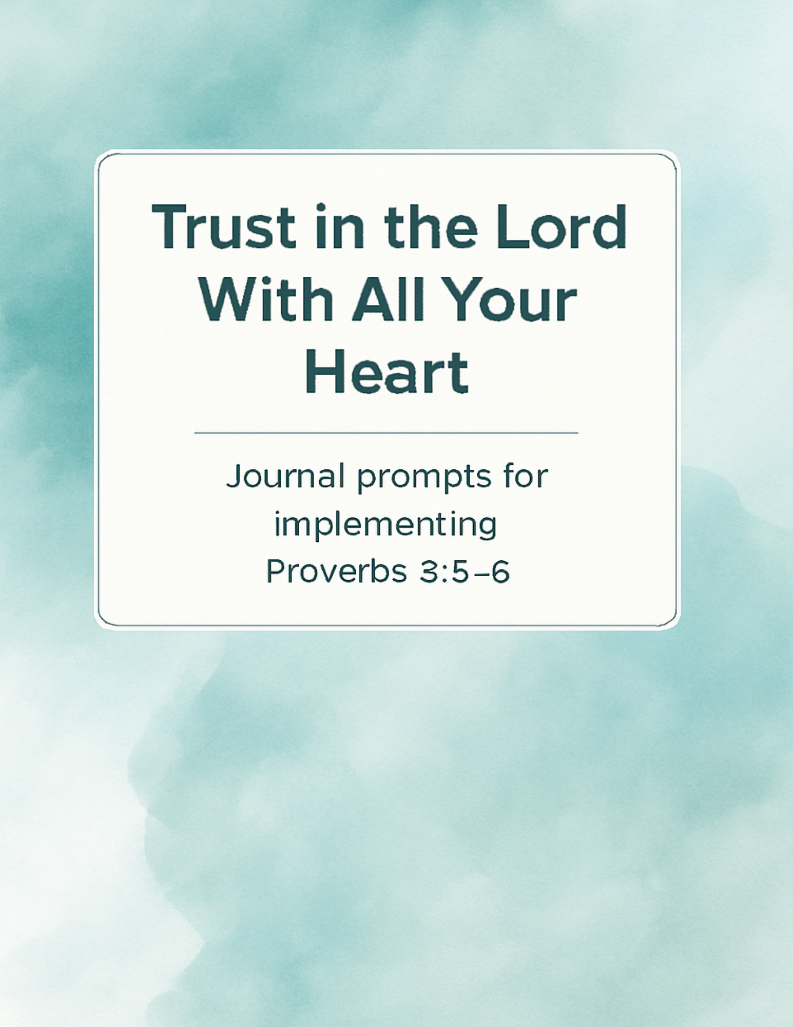 A guided journey into surrendering the need to control. This 50 page journal offers a space to process anxieties, let go of self-reliance, and practice trusting God with your ‘whole heart,’ even when the path ahead is unclear. This journal uses four prompts to help implement the teachings of Proverbs 3:5-6 which says, “Trust in the Lord with all thine heart; and lean not unto thine own understanding. In all thy ways acknowledge him, and he shall direct thy paths.” Record your concerns, thoughts, gratitude and promptings/inspiration from God. Then watch for those moments you see God directing your steps.